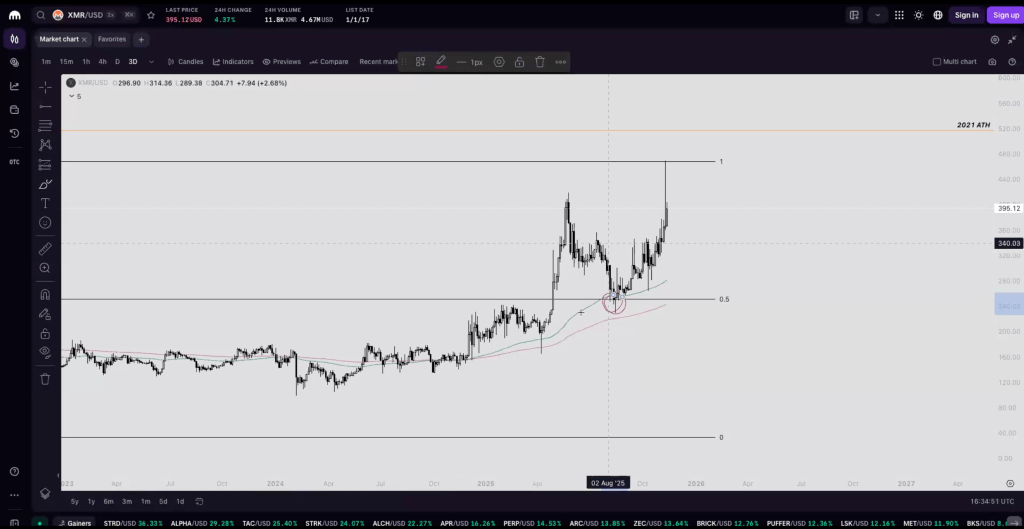 XMR: Clean high-timeframe range; currently at resistance—entry makes more sense after a breakout/acceptance.